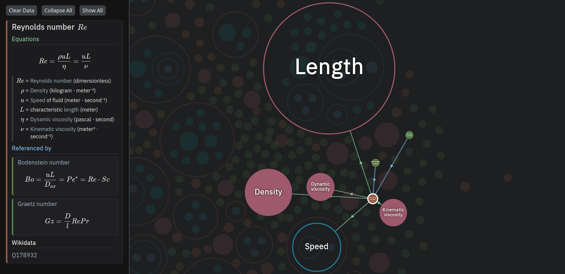 Visualisation of quantity kinds and equations related to the Reynolds number.